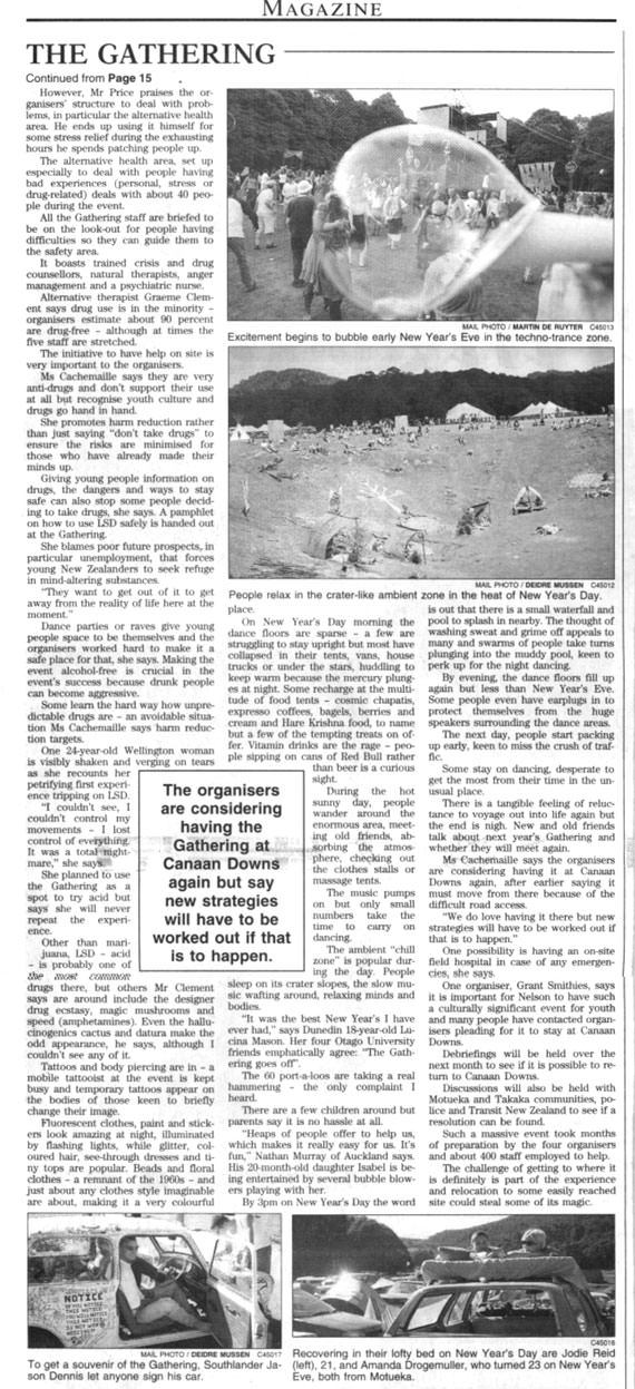 "It was the best New Year's I have ever had," says Dunedin 18-year-old Lucina Mason. Her four Otago University friends emphatically agree: "Tha Gathering goes off".