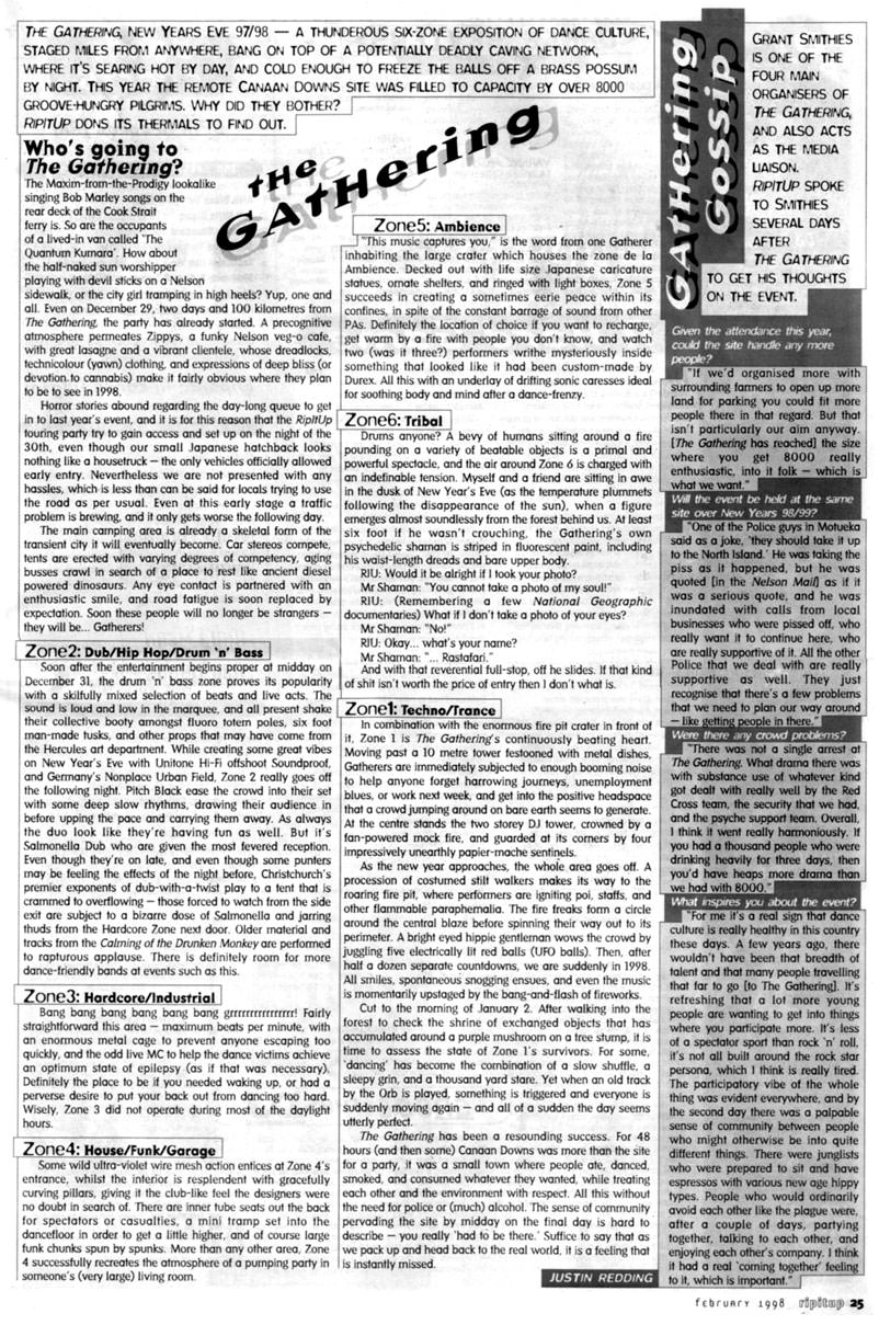 GRANT SMITHIES IS ONE OF THE FOUR MAIN ORGANISERS OF THE GATHERING AND ALSO ACTS AS THE MEDIA LIAISON. RIPITUP SPOKE TO SMITHIES SEVERAL DAYS AFTER THE GATHERING TO GET HIS THOUGHTS ON THE EVENT.