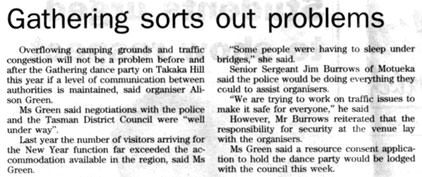 Overflowing camping grounds and traffic congestion will not be a problem before and after The Gathering dance party on Takaka Hill this year if a level of communication between authorities is maintained, said organiser Alison Green.