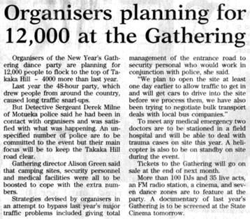 Organisers of the New Year's Gathering dance party are planning for 12,000 people to flock to the top of Takaka Hill - 4000 more than last year.