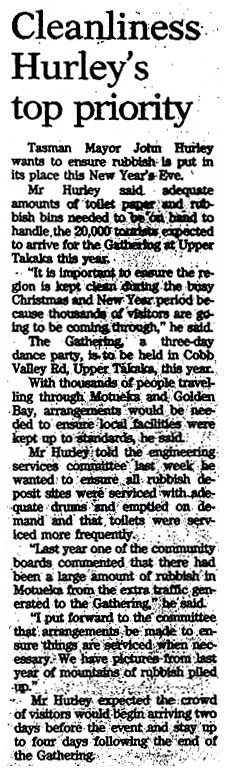 "Last year one of the community boards commented that there had been a large amount of rubbish in Motueka from the extra traffic generated to the Gathering," he said.