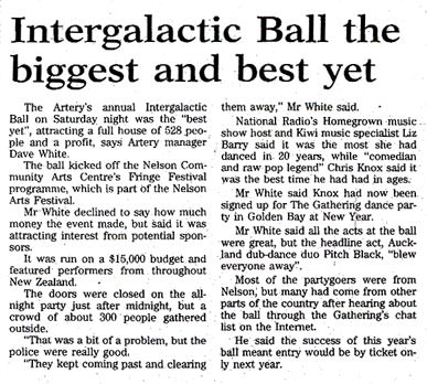 The Artery's annual Intergalactic Ball on Saturday night was the "best yet", attracting a full house of 528 people and a profit, says Artery manager Dave White.