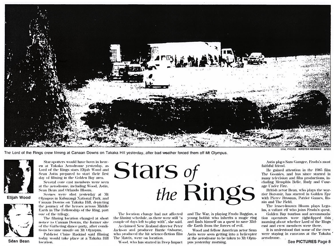 Star-spotters would have been in heaven at Takaka Aerodrome yesterday, as Lord of the Rings stars Elijah Wood and Sean Astin prepared to start their first day of filming in the Golden Bay area.