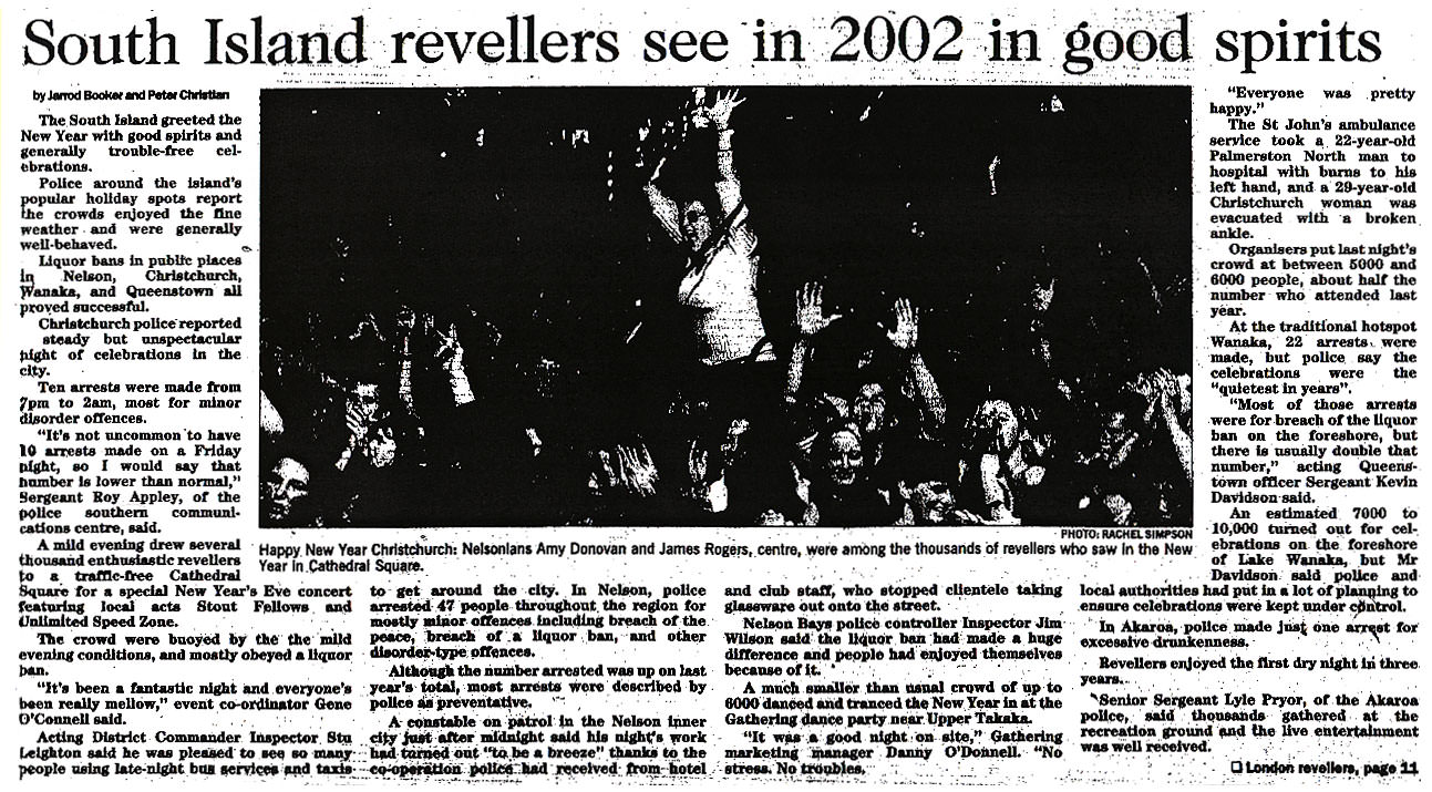 South Island revellers see in 2002 in good spirits