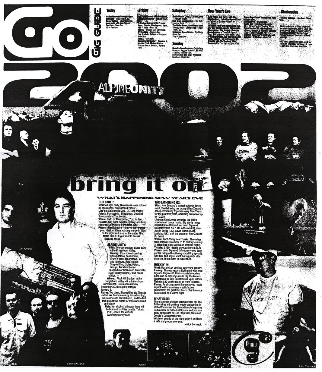 There's plenty of other entertainment on: The Trillionaires will do their wacky welcoming in at the Wunderbar, the Stoutfellows bring some Celtic cheer to Cathedral Square, and you can party down hard on The Strip with Azure and Coyote's Dawnbreaker 02.