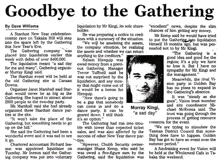 "The Gathering is a good idea and good for the region; it's a pity we have to lose it. But I have no sympathy for Mr Kingi and the management."
